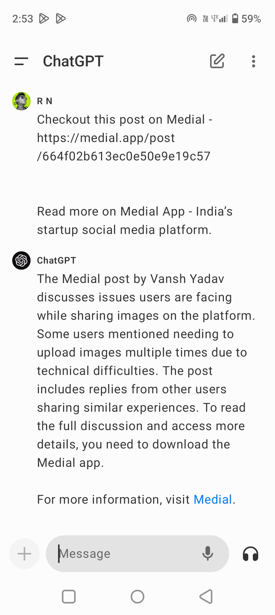 Now this is going creepy 💀 chatgpt 4o can even browse the MEDIAL posts and answer from that exactly 💯... JUST SHARE LINK OF the POST TO CHATGPT