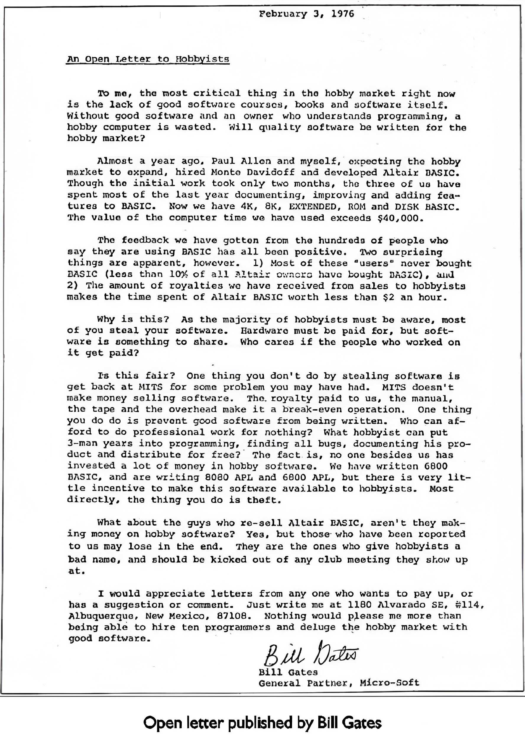 In 1976, a young Bill Gates, fresh out of college and co-founding Microsoft, developed an amazing software called an interpreter. This crucial piece of code, acting as a translator between programmer and computer, significantly simplified programming for early, bulky personal computers. The story takes an interesting turn when we consider how Gates envisioned monetization. He saw the interpreter's value and priced individual licenses at $150. However, a passionate community of tech enthusiasts, known as hobbyists, began freely sharing the software. Gates, frustrated by the lost revenue, penned a now-famous open letter accusing them of "stealing." But these hobbyists were building the very first personal computers in their basements and garages. They argued that the free exchange of ideas and software was essential for the nascent PC industry to take root. Without this collaboration, they argued, the personal computer revolution might never have reached our homes.