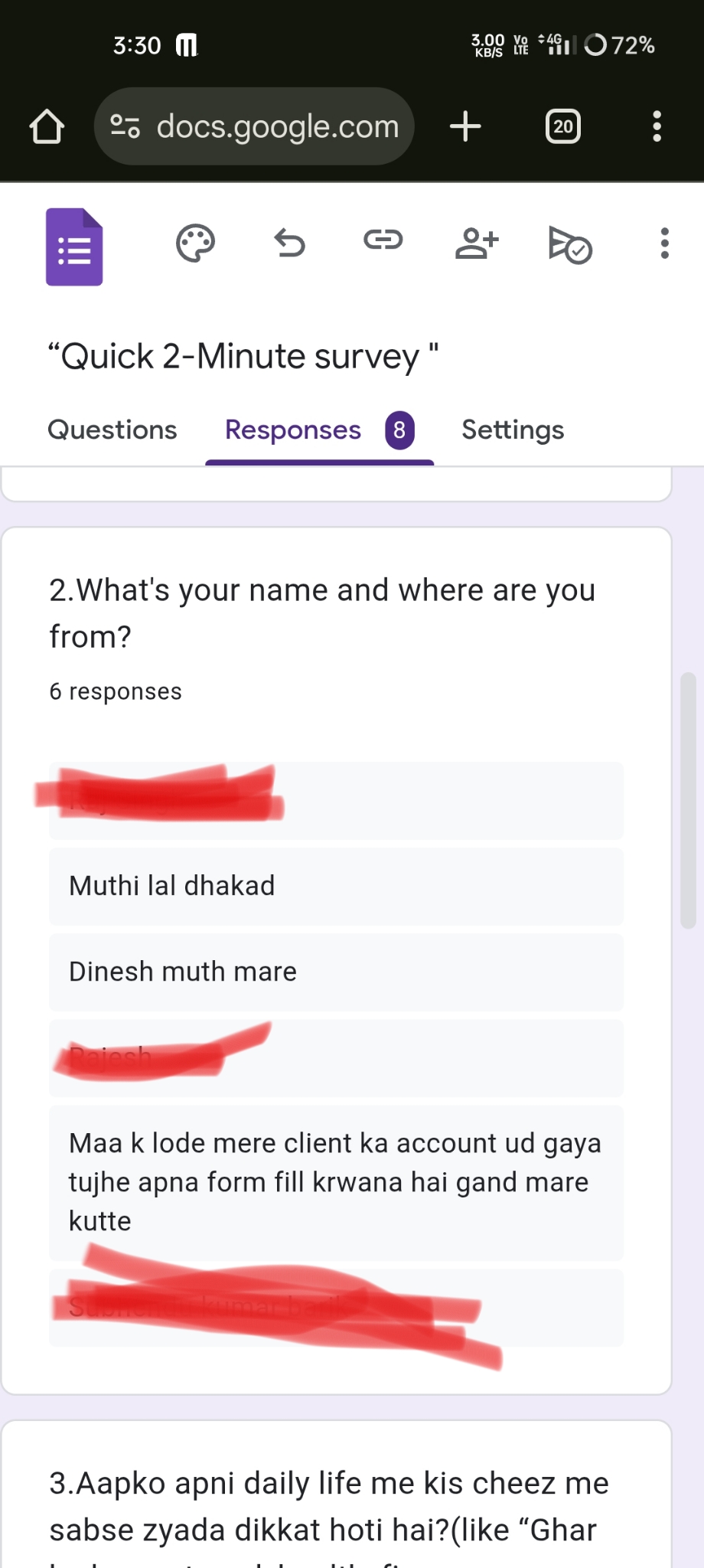 "Some nonsense people may abuse, but I’ll keep trying 💪 I’m just doing a survey and will continue my efforts. You can help me a lot by filling out my form 😊 Your opinion matters! A big thank you to all who already filled it and supported me ❤️🙏" h