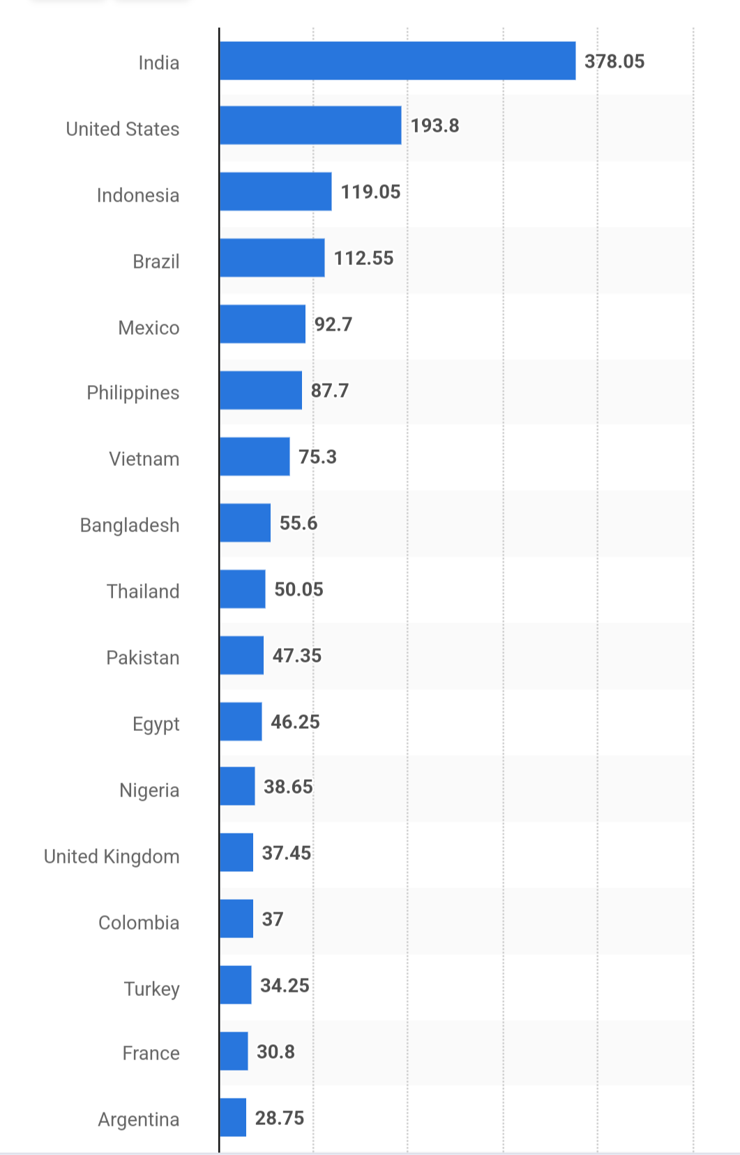 There are more than 378 million Facebook users in India alone, making it the leading country in terms of Facebook audience size. To put this into context, if India’s Facebook audience were a country then it would be ranked third in terms of largest p