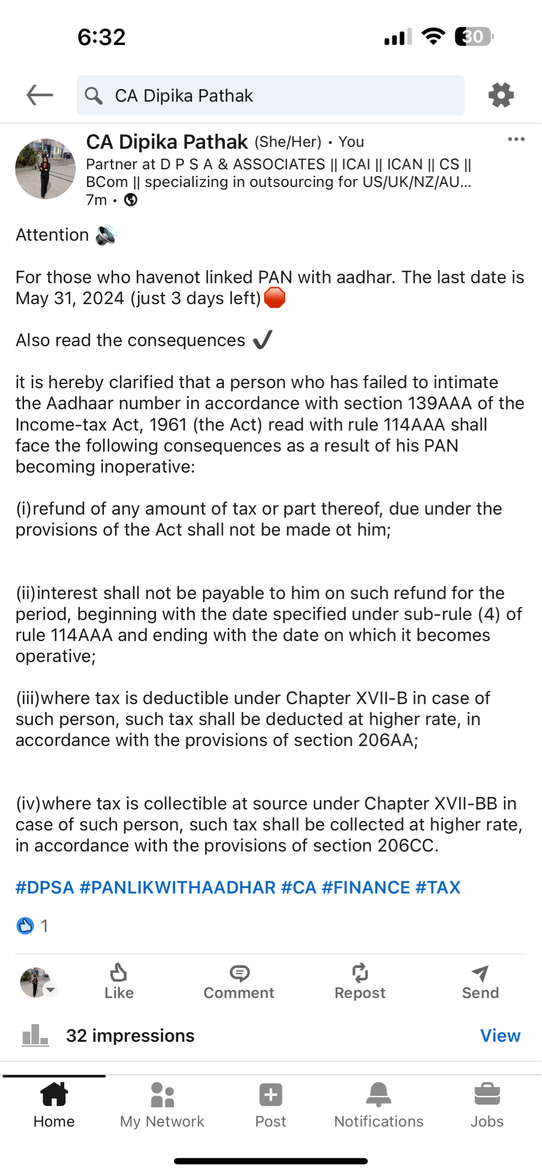 For those who havenot linked PAN with AAdharโฆ Last date is 31 May 2024