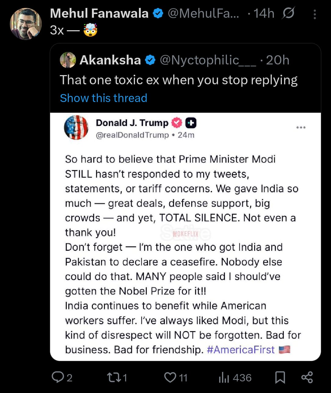 Em dash — the real villain of Content. Donald Trump just used "three" em dashes in a single post. Two in one sentence. Nobody batted an eye. Now imagine "me" doing that. There’d be a whole brigade saying: “AI-generated.” “No way this is human.” “M