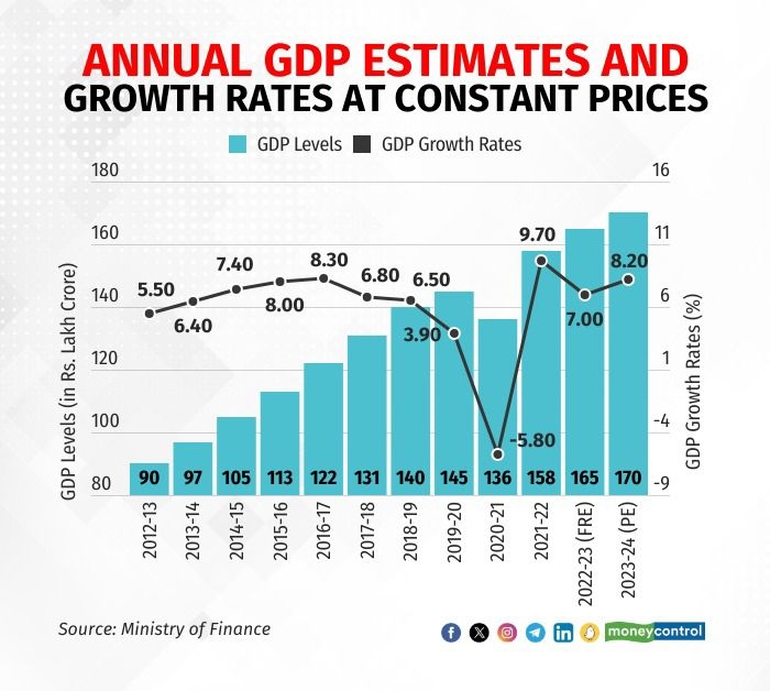 Ice Cream scoop on the Dalal Street with finance cherry 🍦 ➡️ Brace for volatility: Final phase of Lok Sabha elections! ➡️ Sensex and Nifty hitting new highs. Not a surprise. ➡️ Foreign investors selling, domestic ones buying! ➡️ Market experts predict stability post-election. Betting on BJP's return. ➡️ Key sectors: Watch Adani Ports & SEZ and Wipro. ➡️ Global cues and earnings season will also play a part. + current war scenes :( Dalal Street's rollercoaster ride isn’t over yet cuties. Ready for the chaos? PS: Get ready for the show on 4th of the June! Here's some data on GDP!