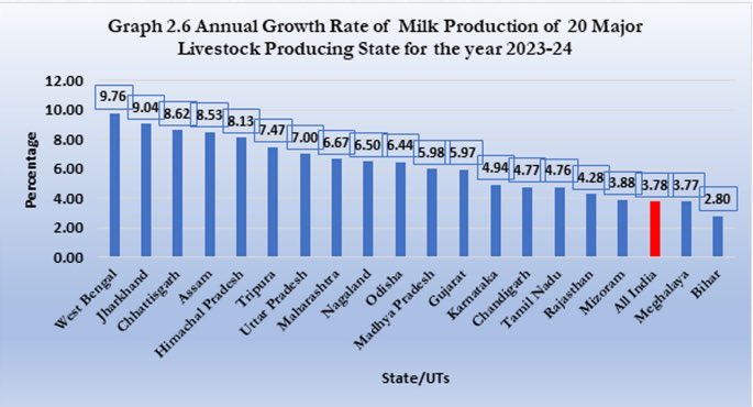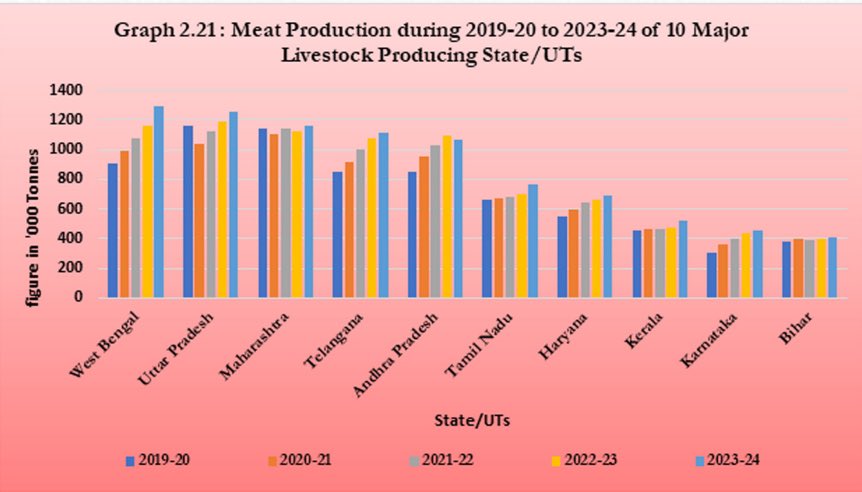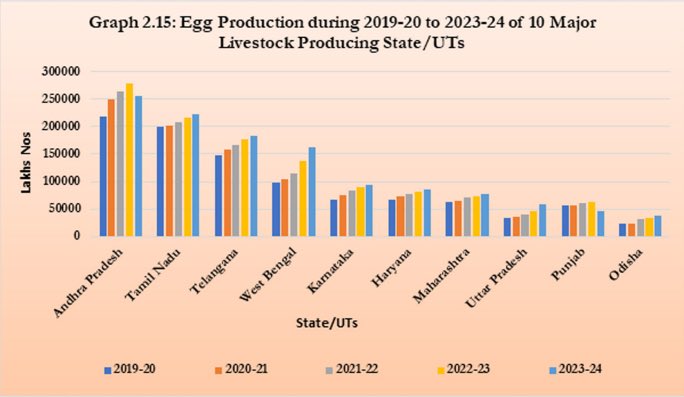 Great Growth in Animal Husbandry Sector of West Bengal according to the Animal Husbandry Statistics report 2024. - West Bengal is now the 4th Largest Egg Producer in the Country after Andhra Pradesh, Tamilnadu and telegana - The State Has the Highe