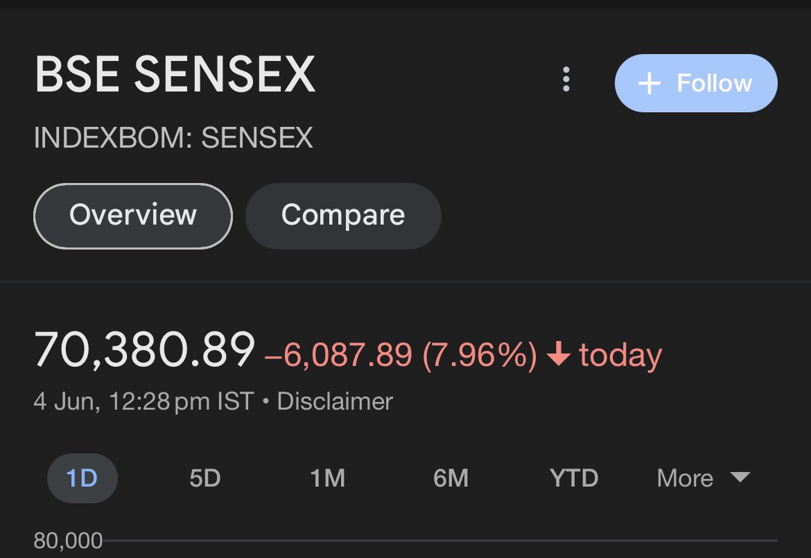 6000 point down ................. Fingers crossed hope we get stable government. 23k lost in minutes.....