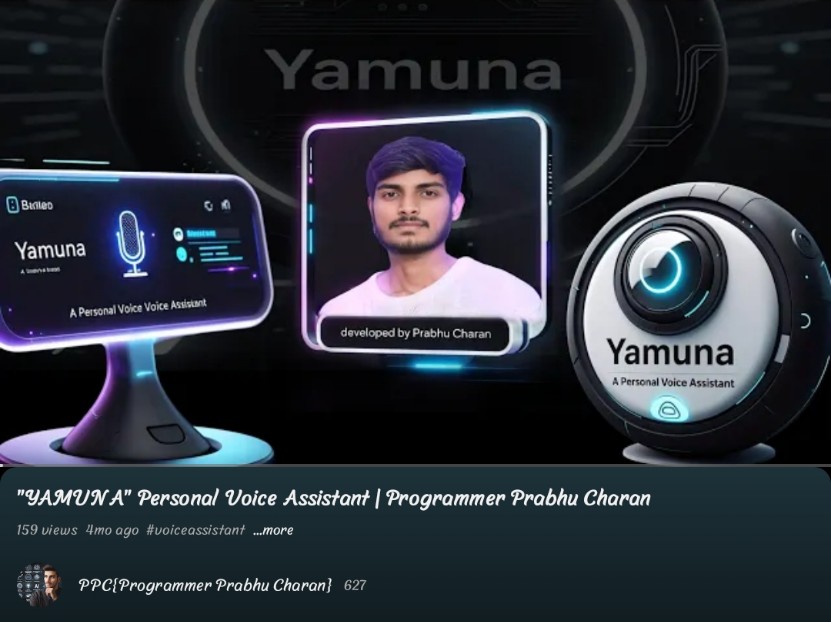 One of My best project "YAMUNA" - Personal Voice Assistant for my PC "What if just saying a name… could awaken intelligence?" What if 'Yamuna' wasn’t just a name — but a portal to the power of AI? Meet Yamuna, my personal AI voice assistant –From man