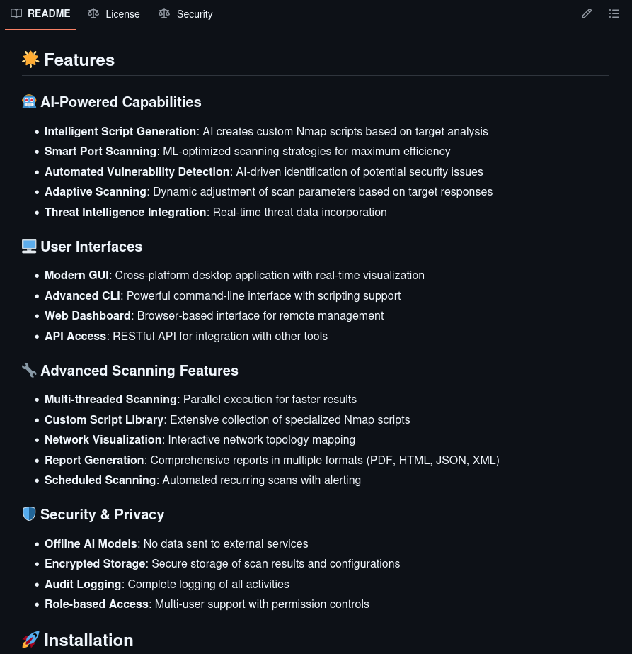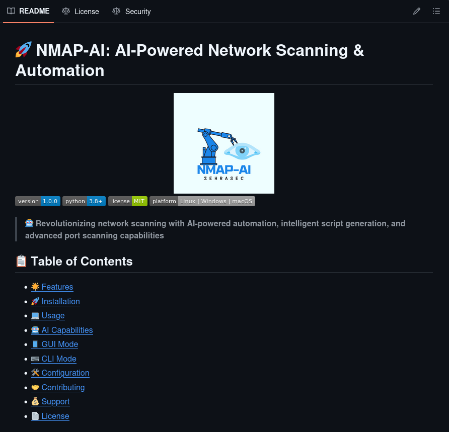 ๐ Introducing NMAP-AI โ Built by ZehraSec ๐โ๏ธ AI-Powered Network Scanning & Automation Platform ๐ป๐ค ๐ก Revolutionizing the way you perform security scans: โ Intelligent Nmap Script Generation โ Smart Port Scanning with ML โ Automated Vulnerabilit