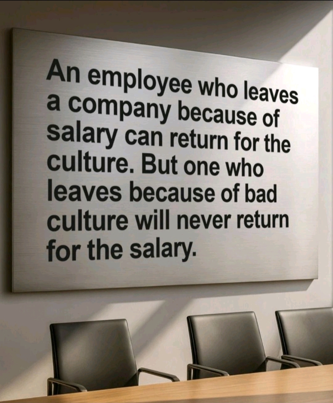 An organization can offer great salaries, but itโs the culture that truly retains people. ๐ Employees may return for culture, but they will never return to a toxic one โ no matter the salary. Building a positive work culture isnโt optional, itโs es