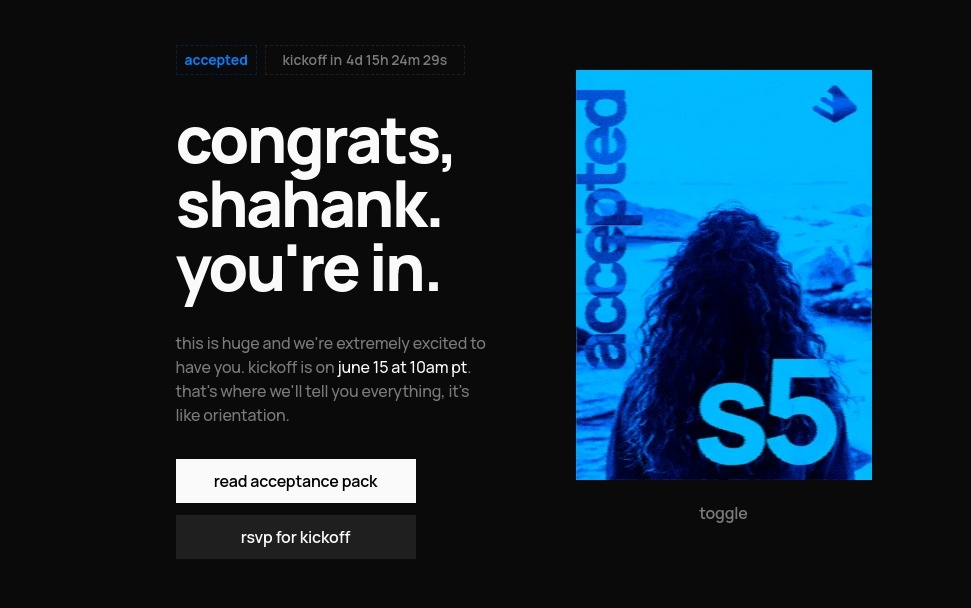 Your boy received confirmation from @buildspace nights&weekends s5 🔥(yeah they are now accepting s5 applications). If you have a solid startup idea or let's say you wanna build a great product which can help an individual in his daily lifestyle then
