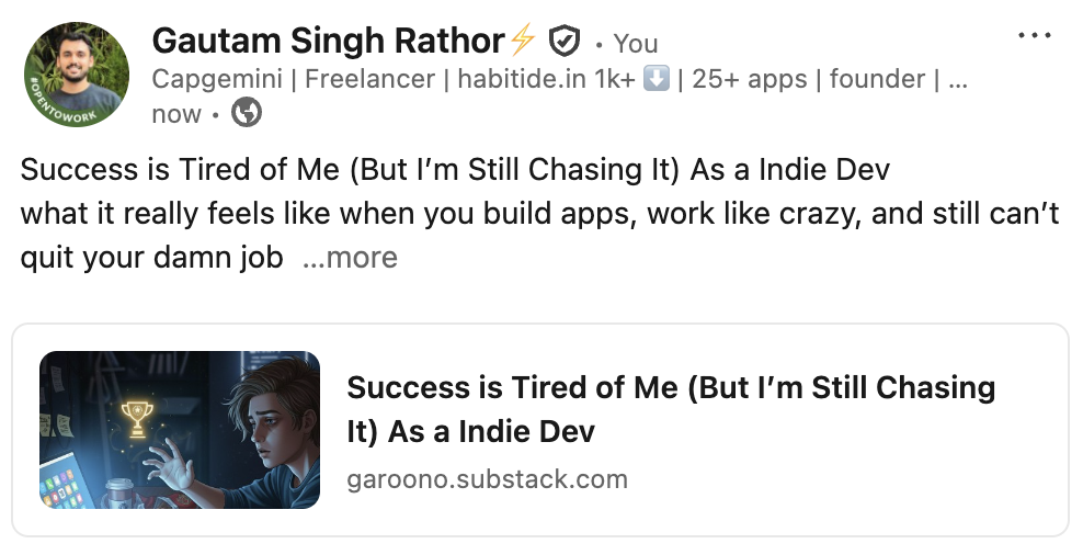 Success is Tired of Me (But I’m Still Chasing It) As a Indie Dev what it really feels like when you build apps, work like crazy, and still can’t quit your damn job Okay, real talk. You ever work your ass off, build something you think is the one, sa