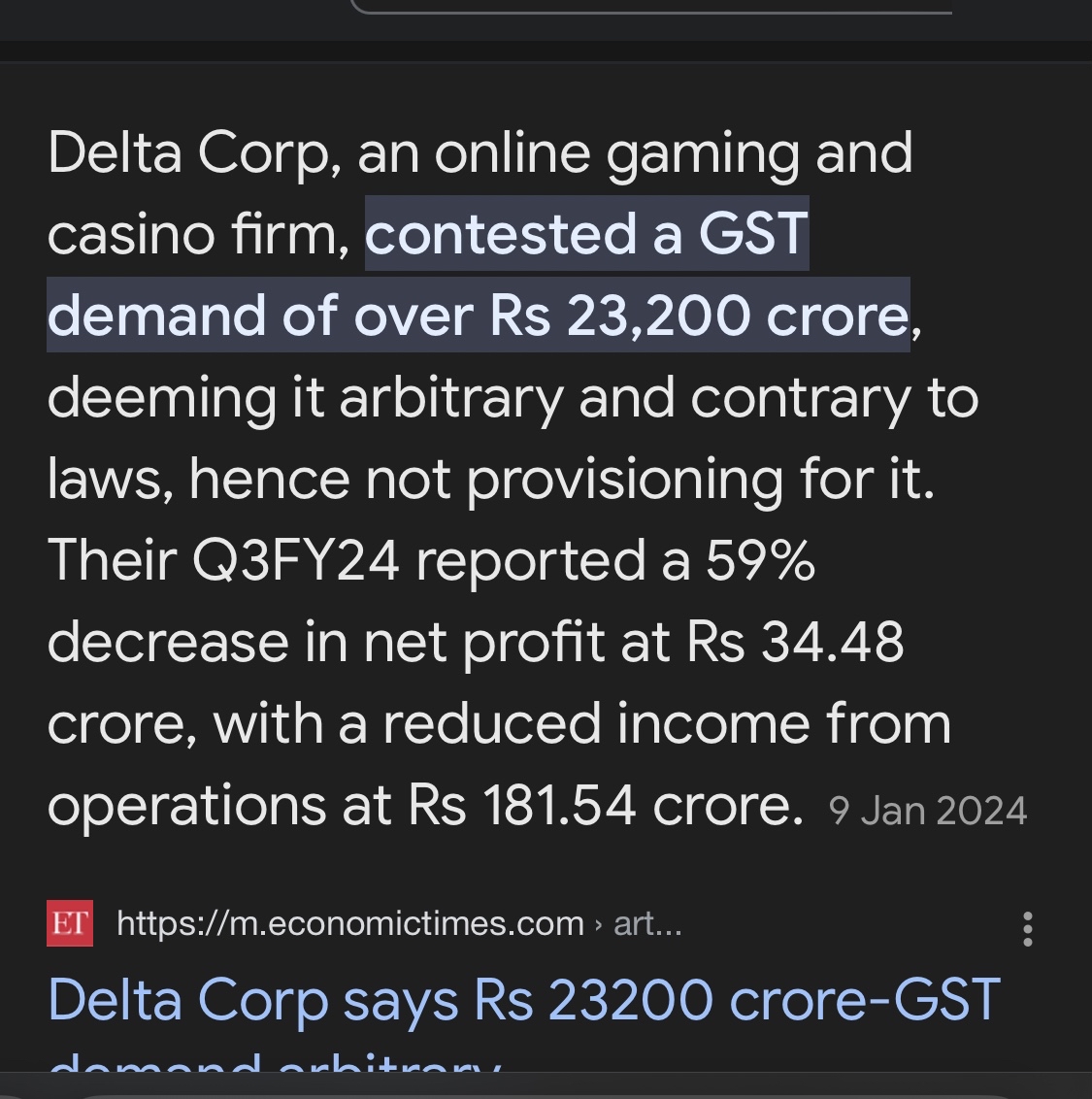 Delta corp is a Casino company their market cap is 3.6k crore but government is demanding 23k crore GST ??