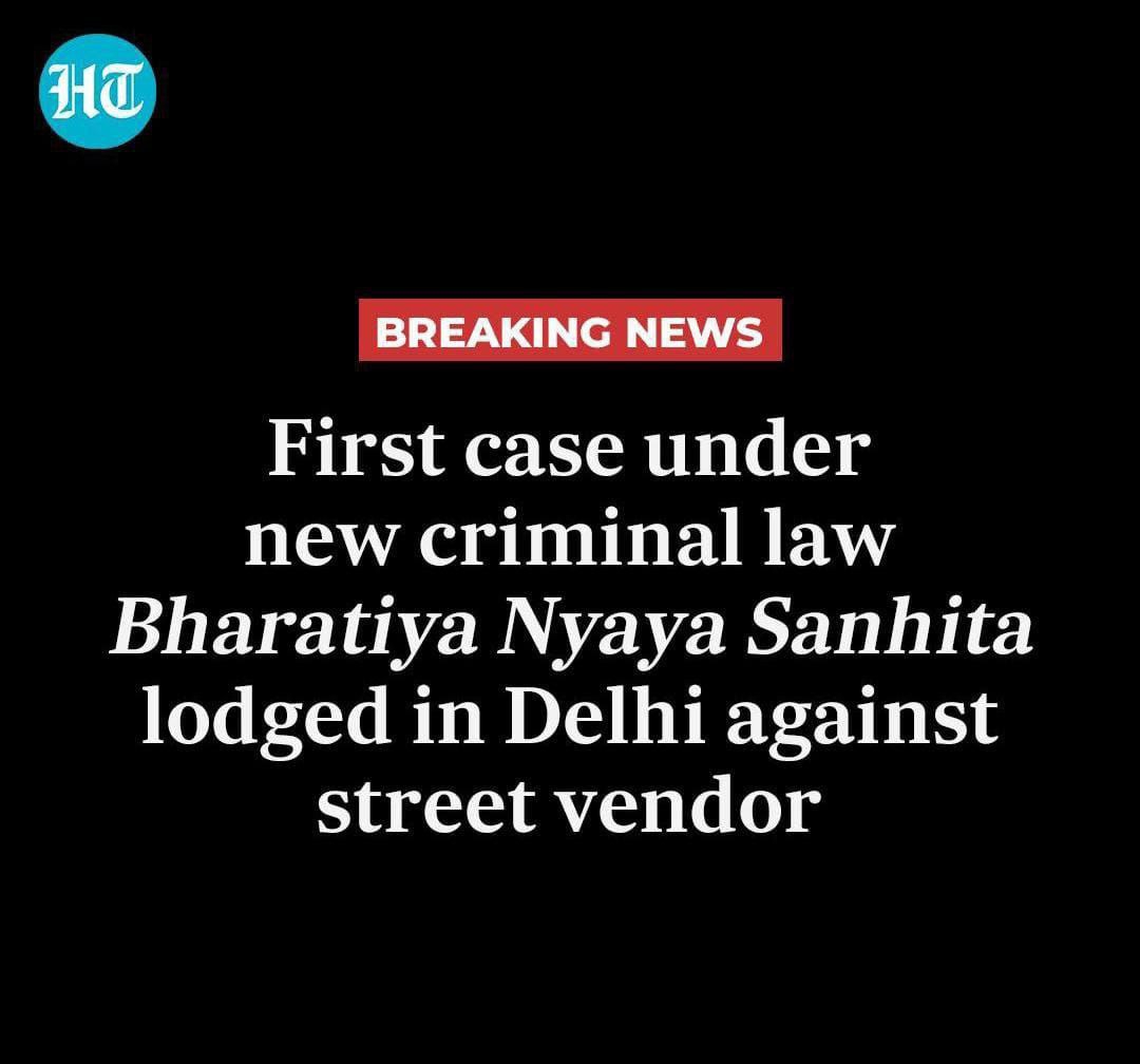 ๐จNow street vendors get notice first and then action . That's the great law for poor people As soon as the new criminal laws came into effect on July 1, the first case under the new Bharatiya Nyay Sanhita was registered in Delhi against a street
