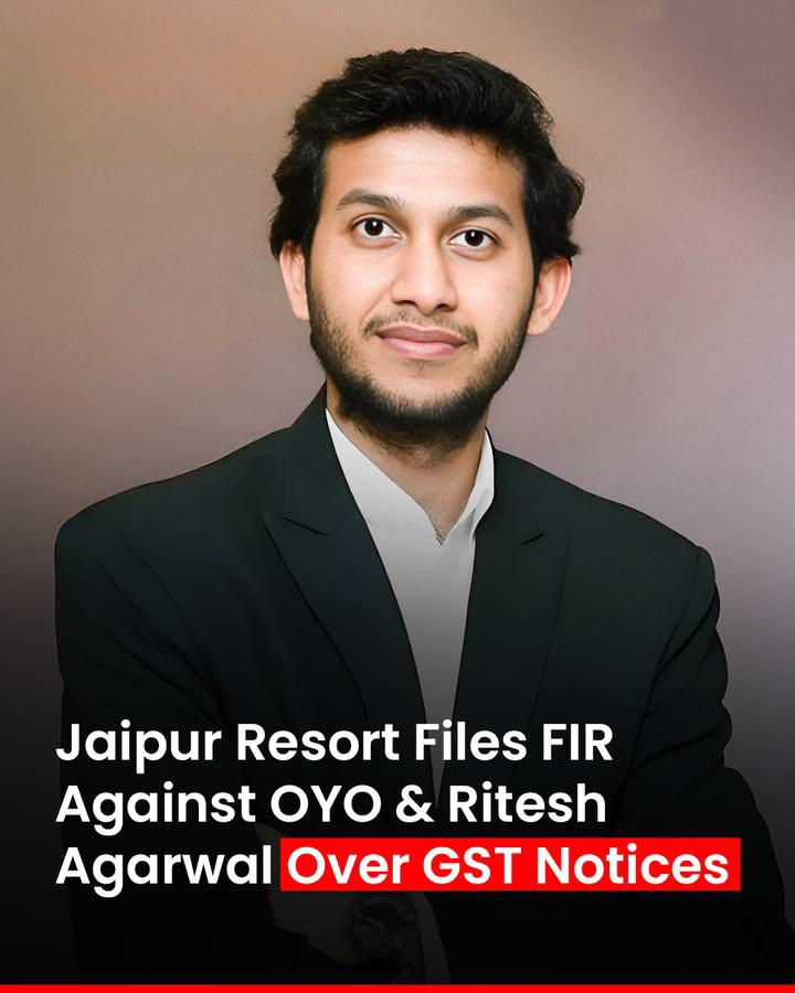A Jaipur-based resort, Samskara Resort, has reportedly filed an FIR against hospitality giant OYO and its cofounder Ritesh Agarwal after receiving GST show-cause notices amounting to INR 2.66 crore. The FIR, lodged by resort owner Madan Jain, also n