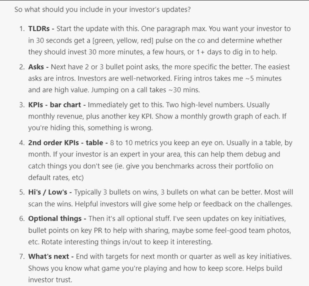 Struggling to raise money for your startup? Do this: 1 Write a monthly / bi-weekly update with all the progress you are making on the business. 2 When someone passes on the company, ask them if they would like to be put on your updates. 3 Send ev