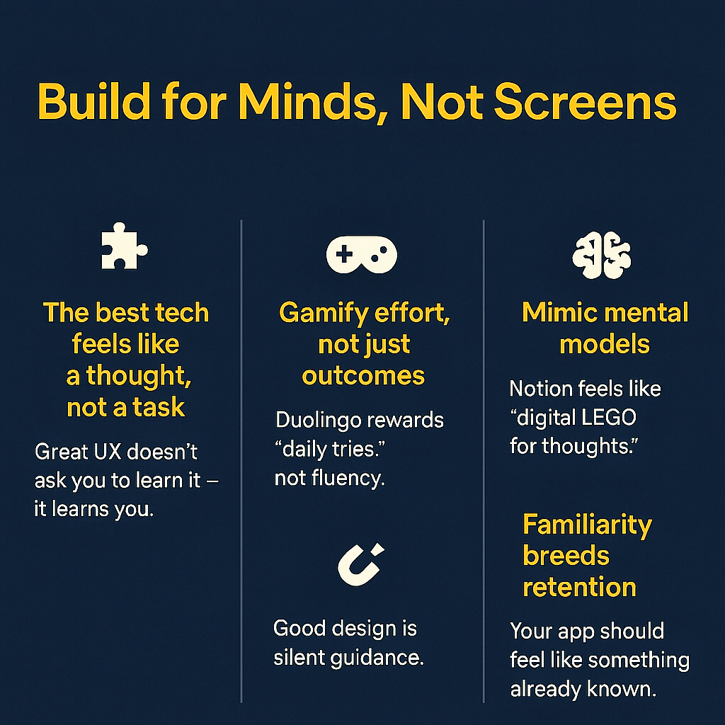 š§ Your mind is a better UI than your app. Most brilliant apps arenāt just toolsātheyāre extensions of how we already think. š¹ Duolingo taps into gamification and consistency. š¹ Notion mirrors how our brains organize thoughts. š¹ Instagram exploit