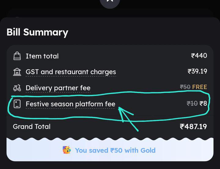 Dear @Zomato ๐ Now what is this "Festive season fee". You need to give offers instead you guys are charging. This is ridiculous. Different ways to earn money. And worst part is people just order without checking as you hide "bill summary" now!!