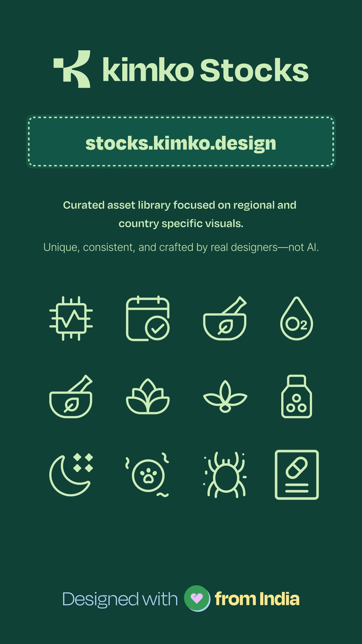 Hello folks, I’m here to present my new product and would love to know your feedback on this. Kimko Stocks is a icons/fonts library. We built this with a simple goal: to celebrate handcrafted design and showcase what real designers can bring to the
