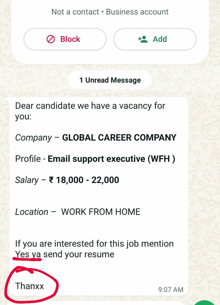 The description of Fake job offers are interesting. Send yes ya Thanxxx 🤣