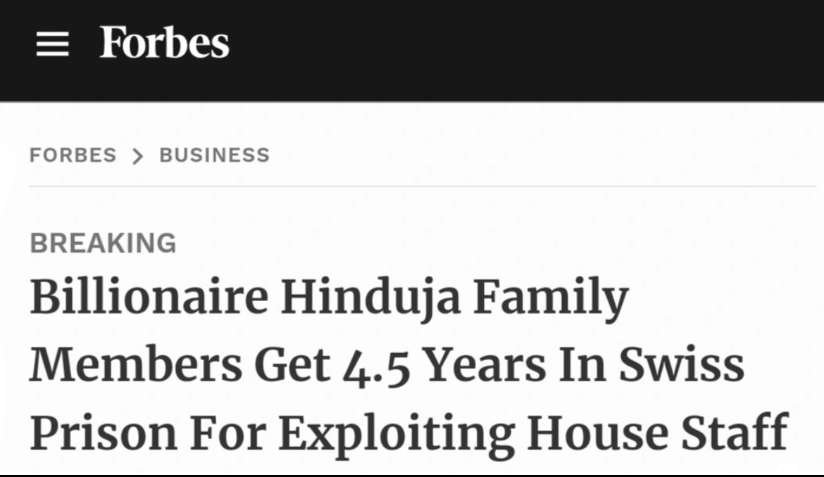 Hinduja Family net worth: $32 Billion Crime: Paying domestic staff extremely low wages of $7 for an 18-hour workday These billionaires are just crazy! Capitalization at its peak!!!!!