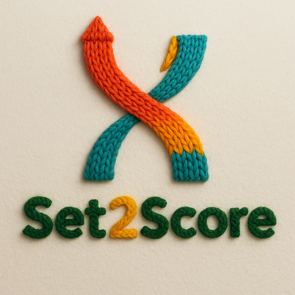 Create a logo for your brand !! This is a simple prompt for you. Create a highly detailed, textured logo for [Set2score], made of thick yarn or wool. Each section of the logo should be in a different vibrant color (matching the reference image prov