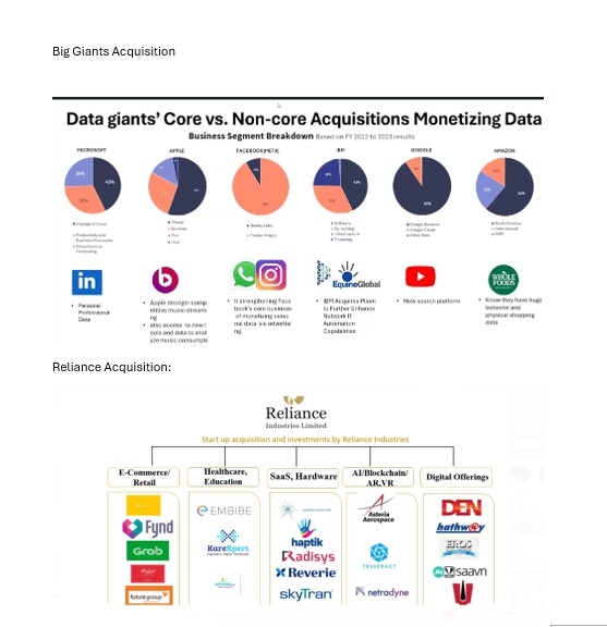 Data giants outside India are in mode to acquire the startup n other industries where ever they see the acquisition will boost data collection. They already now the data plays a very critical role far before. Where as in India Reliance is slowly approaching the same wherein they can collect the entire data. Do you know anyother Indian industry which are doing the same?