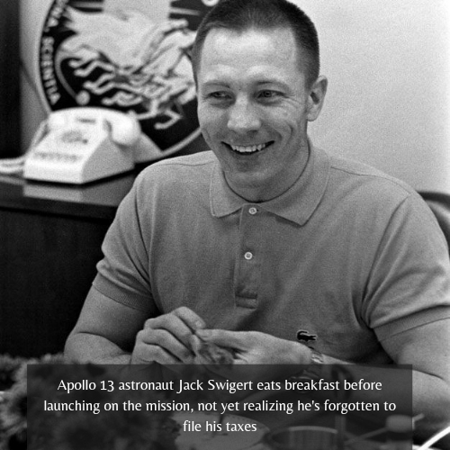 Wanna hear a CRAZY story? Back in the day, during the historic Apollo 13 mission, astronaut Commander Jack Swigert faced a hilarious yet serious dilemma. Commander Jack had joined the Apollo 13 crew at the last minute and found himself mid-mission when he realized he hadn’t filed his taxes. Just imagine trying to gather all your receipts and paperwork while floating in space! In a moment that’s both comical and relatable, he had to radio NASA with an urgent request for a tax extension. Despite the ground crew thinking it was a joke, Jack’s message was clear: "Hey, listen, it ain’t too funny; things kind of happened real fast down there, and I do need an extension. I didn’t get mine filed, and this is serious." Swigert filed for an extension and resolved the tax matter after returning from the mission. He was fortunate to get an extension, but not everyone is! So even if you're in Space, don't forget your Earthly duties, especially taxes! :)