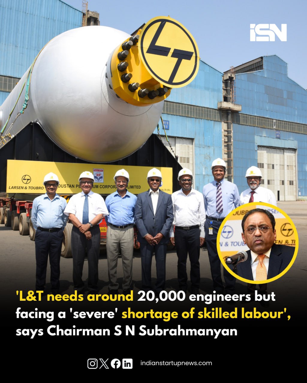 Skill problem 😐 in India Multinational conglomerate Larsen & Toubro (L&T) is experiencing a "severe" shortage of skilled labour across various projects, attributed to factors such as extreme weather conditions and disruptions caused by elections, according to Chairman and Managing Director SN Subrahmanyan. He said that the company currently needs approximately 25,000-30,000 labourers. "We have specific HR for Labour. We have private labor colonies... we also taken measures to transport people in buses, taking measures to give them health and energy drinks during breaks. Early morning when they come to us, we give them breakfast late night when they go we give them dinner. So such arrangements have been made," said Subrahmanyan. He further pointed out the shortage of engineers in its IT business. "There is a need for about 20,000 engineers within L&T... We are augmenting the shortage with training centres to upskill them with necessary requirements," he added.