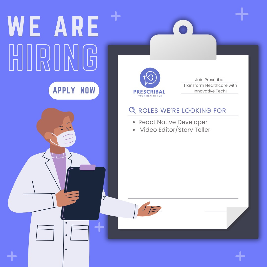 🚀 Prescribal is looking for few interns in roles like react Native Developers and Video Editor/Story teller. You can find all information in the link given below ⬇ https://forms.gle/Dm3gMNe2X8EXqsH2A