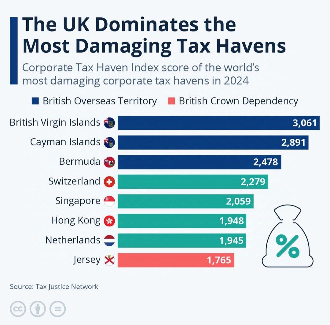 The UK's Overseas Territories Lead the Charge in Global Tax Havens – British Influence Dominates the Corporate Tax Haven Landscape in 2024 🤯 (A tax haven is a country or jurisdiction that offers low or no taxes, minimal financial transparency, an