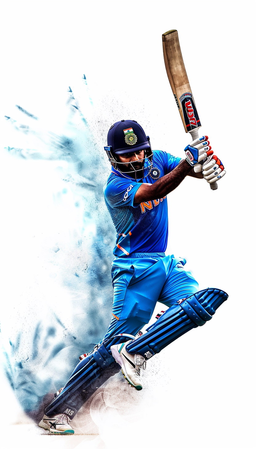 Random - Midjourney/DALLE - AI images dump Used Midjourney here: Prompt: “Sport photography of a professional indian cricket team player with a blue indian cricket uniform, with a white background, and dynamic effects in the style of motion, photosh