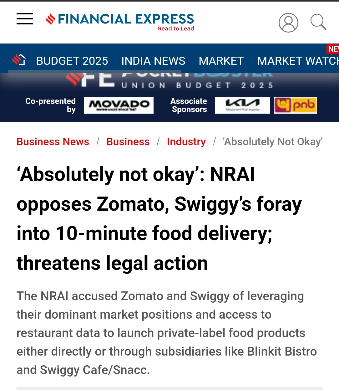 The recent launch of private-label brands like Blinkit’s Bistro and Swiggy’s Snacc is a violation of trust for private label restaurants The National Restaurant Association of India (NRAI) has raised some serious concerns, arguing that these moves v