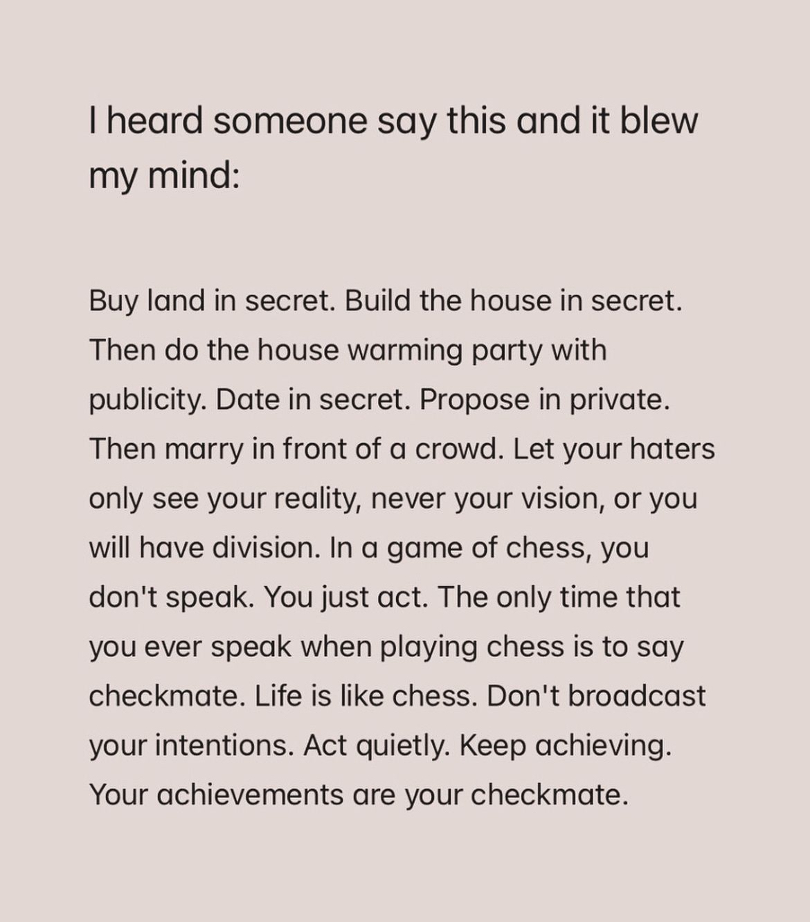 This blew my mind! I have always been the opposite and then ended up with 0 final results! Build in secret, display in public.