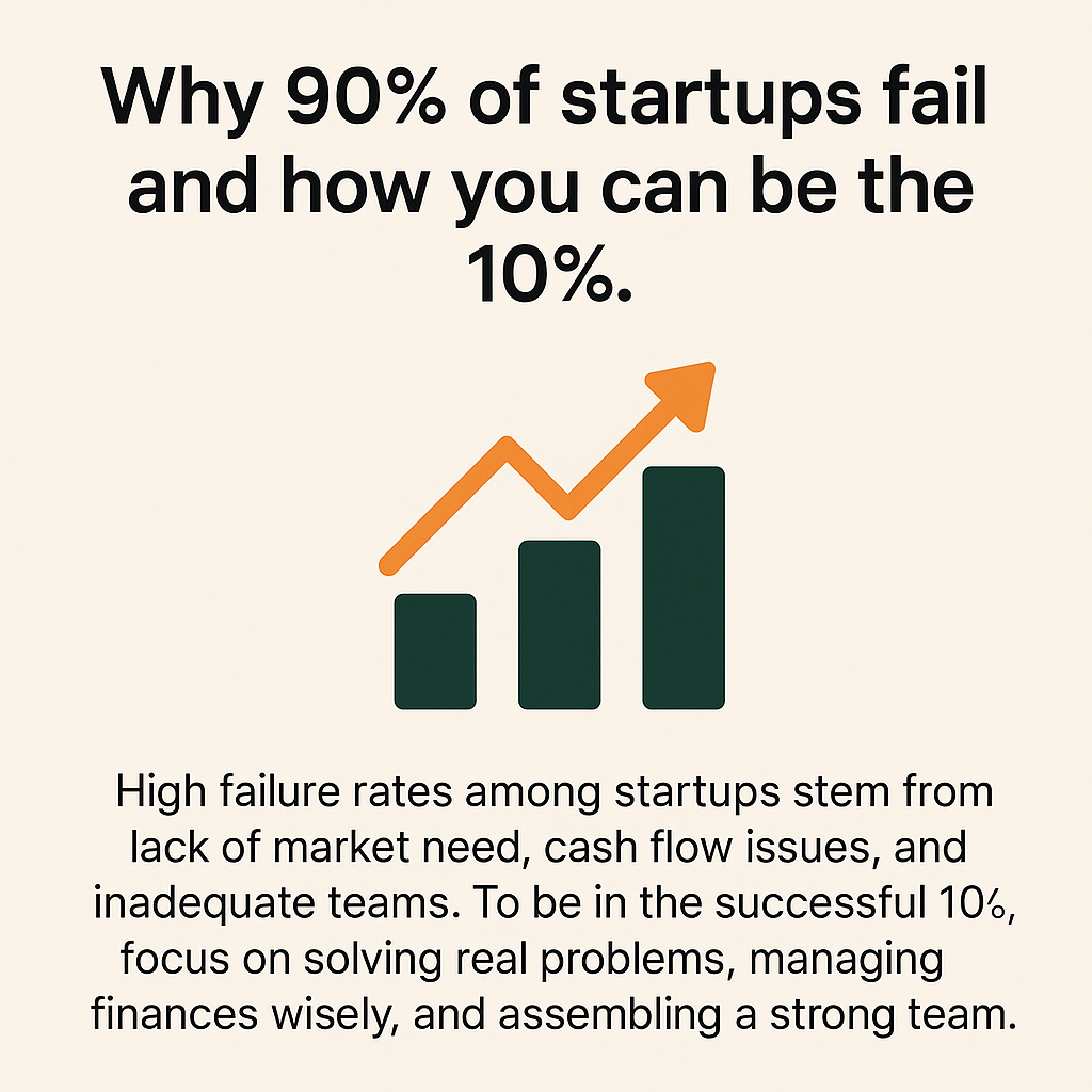 Why 90% of Startups Fail โ And How You Can Be the 10% Starting a business is easy. Sustaining it is where the real game begins. Studies show that around 90% of startups fail, and the top reasons include poor product-market fit, lack of capital, weak