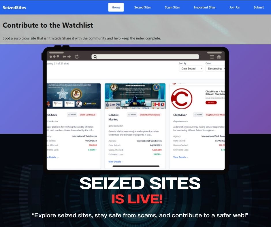 Hey everyone, I just launched something I’ve been working on: https://seizedsites-101.vercel.app/ It’s a database of seized websites taken down by authorities. There’s also a scam section to help people stay safe, and an important sites section wit