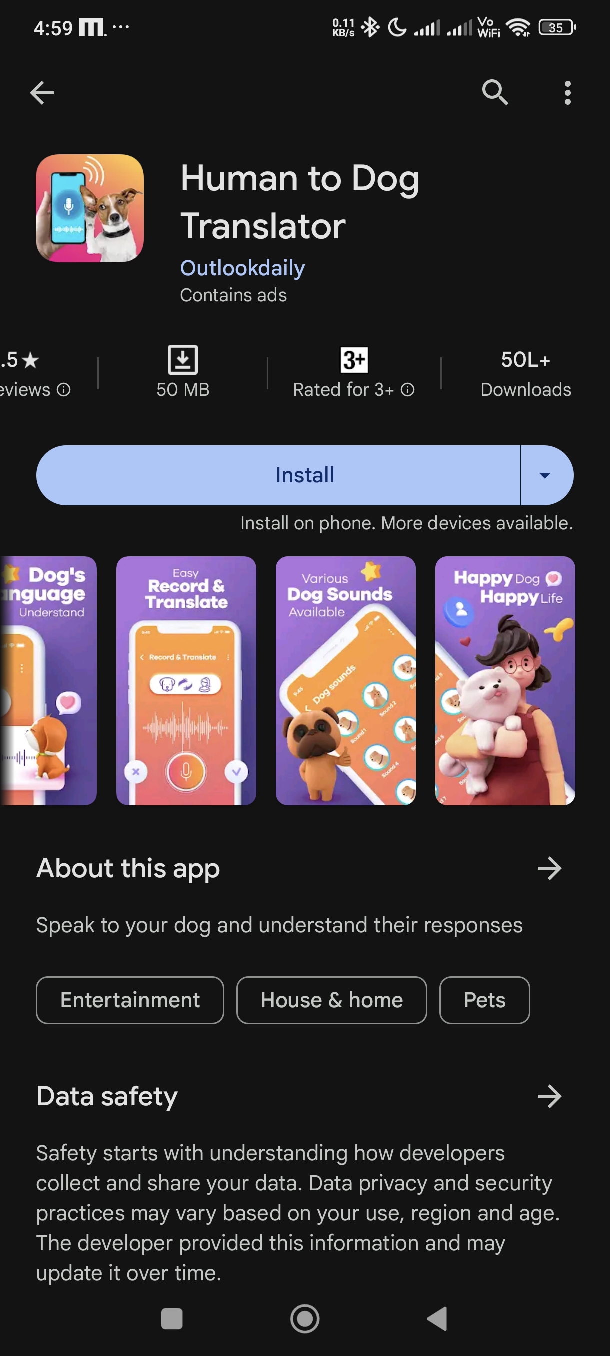 Can you believe this ? 😂 😂 App that translate humans voice into dog voice get 50Lakh + downloads and 4.5 rating ⭐ on Play Store .
