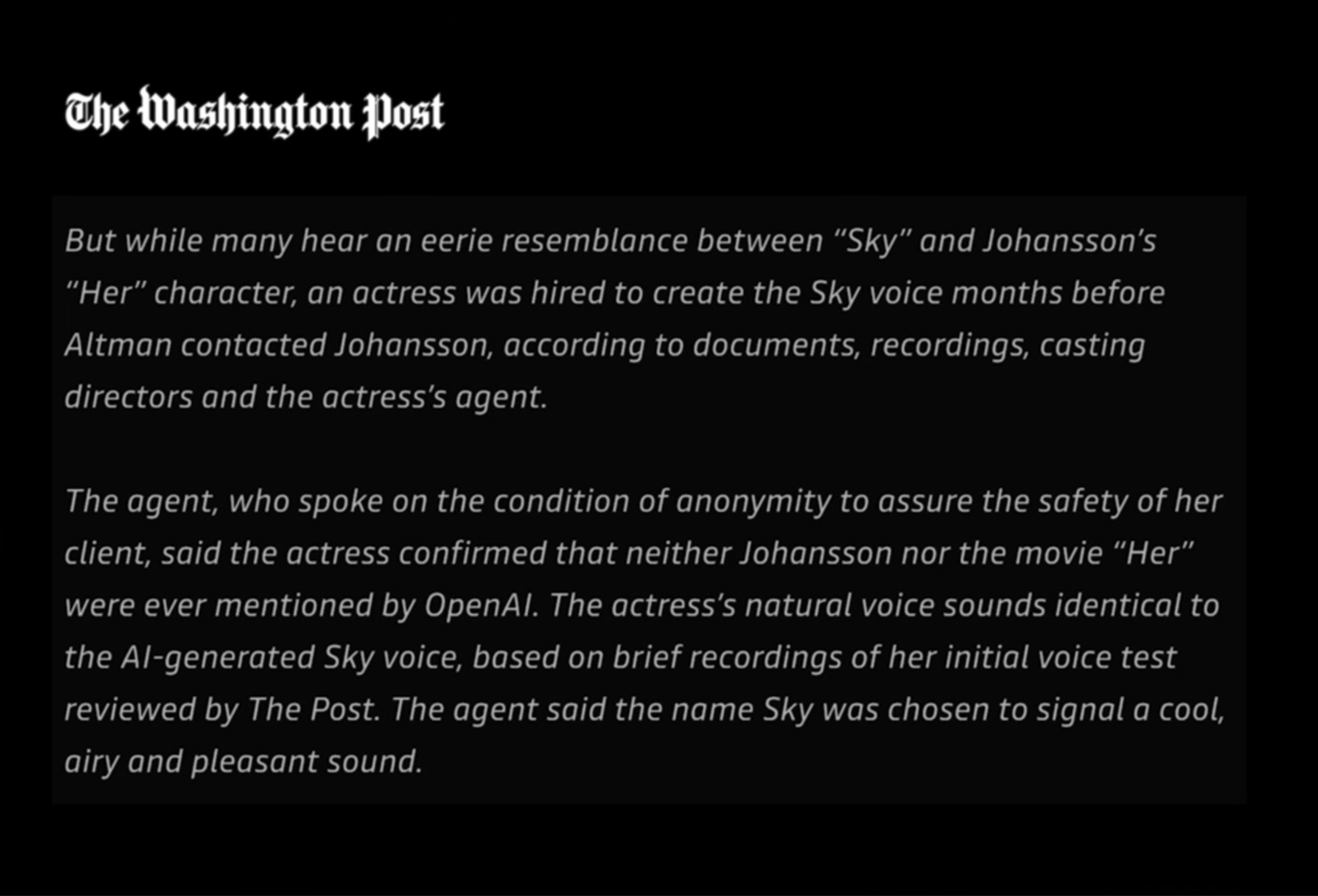 Here is the update from the last post... It is a tweet from Krishna Rohit, The voice used in chatGPT 4o is not Scarlett Johansson's voice. There is an other person who gave voiceover to the chatGPT 4o "sky" voice model which sounds like Scarlett Joha