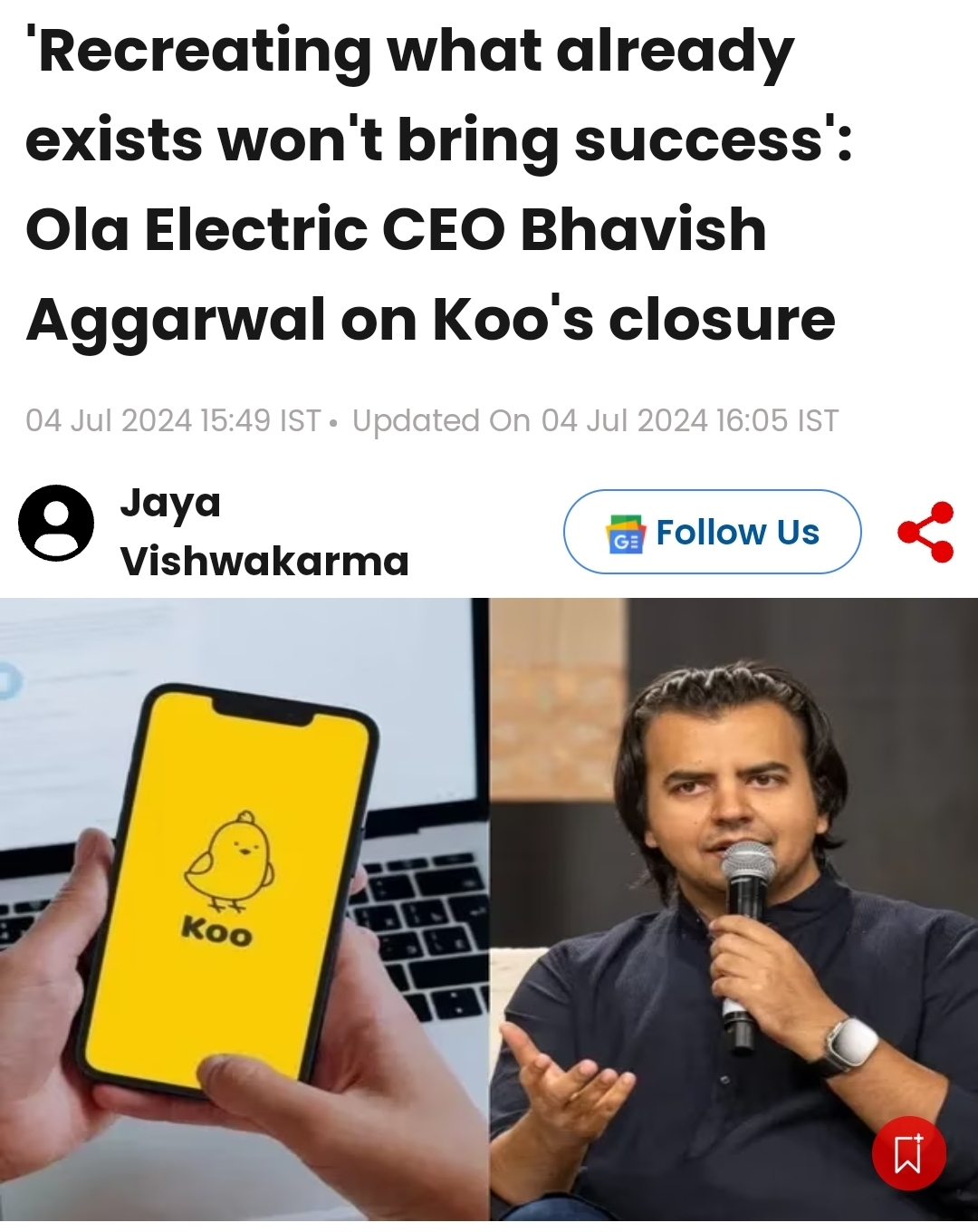 Built Ola when Uber already existed Built Ola electric when Ather already existed Building Krutrim when ChatGPT, Claude, Mistral already exist. What's your take on this comment?