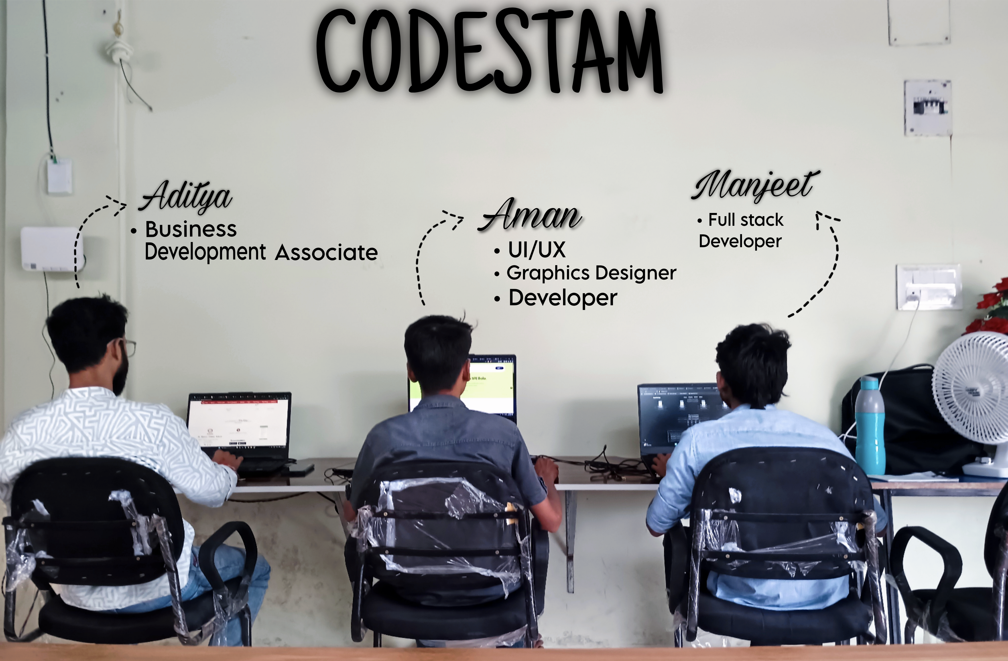Meet the powerhouse behind Codestam Aditya, our Business Development ace who connects ideas with opportunities . Aman, the creative mind turning visions into stunning designs & smooth user experiences. Manjeet, our Full-Stack wizard making sure ev