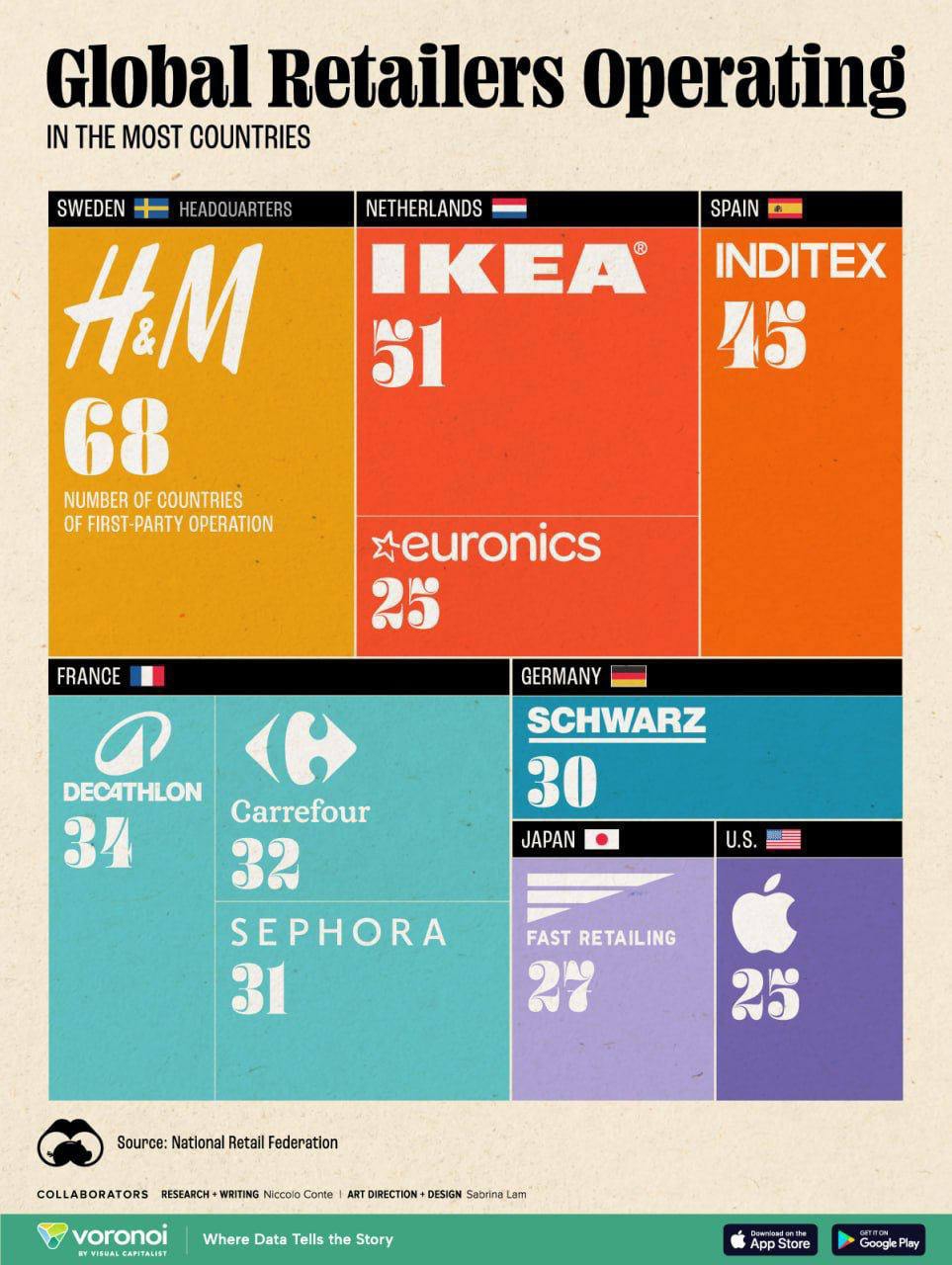 🗣 The largest global retailers. 🌍🛒 8 out of the 10 biggest companies with the widest reach in the global market come from Europe. 🌐🇪🇺