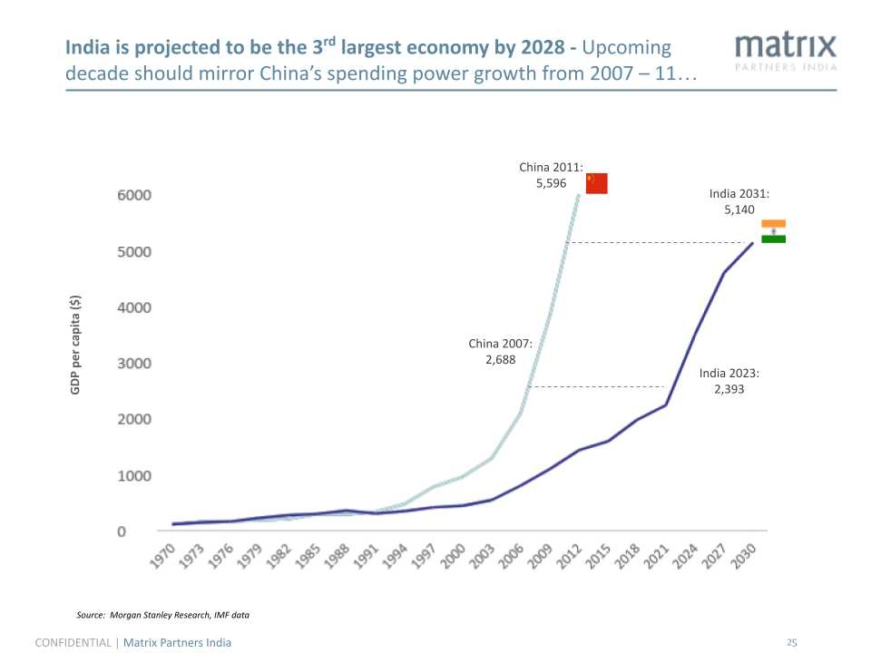 India is currently going through it's golden period This chart estimates the growth of some major economies in the coming decade with India leading with 6.30% annual growth rate followed by Indonesia and Saundi Arabia with 5.50% and 4.60% annual gro
