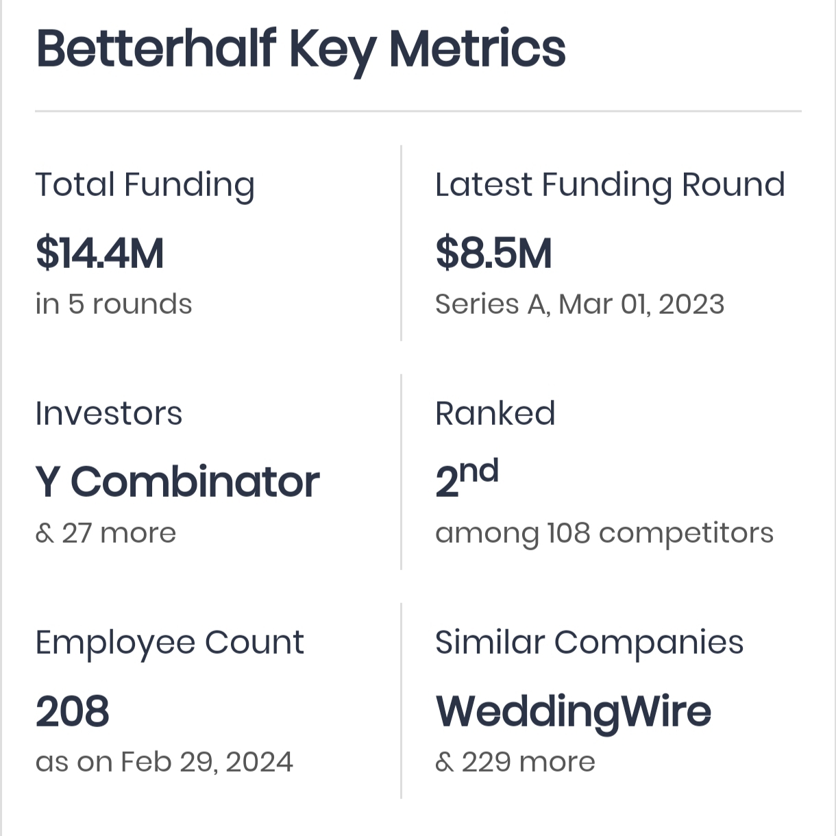 Betterhalf. AI metrimony app ๐ก Wtf.... This Worst copied company get 5 rounds Funding and here deserving innovation and idea's getting zero recognition. 100% they are giving commission and doing courruptions for taking instant fundings