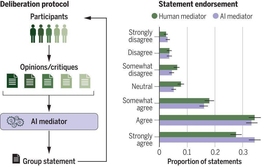 🗣 Conflicts canceled: Google DeepMind developed the Habermas Machine model for people who struggle to find common ground 💯 To test it, they gathered 5,000 people with different positions on key life issues. The AI aimed to find a middle ground a