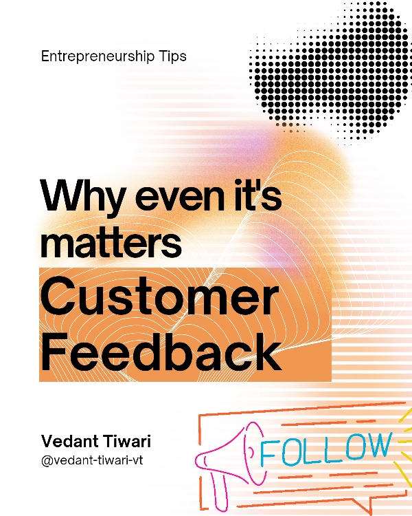 Why Even Customer's Feedback matters? When customer is stupid.... It's Tip and tricks Tuesday again. Everybody knows it's important. But very limited and successful founders know WHY? Some random person, "I know, it helps us improving" Me, "it helps more than just improving" Let's go point by point... Alex Hormozi says in his book $100M offer that "Customer isn't stupid, treat your customers like how you want to be treated as a customer" Let me tell 3 different Area, why customer's feedback actually matters instead of just improving? || IDEA || Customer needs product A, and he want to tell but we're hardworking on product B..... Attention 📌 can't post complete post here because of limited characters 1000 Sorry about that 😔 😐 Read complete post over LinkedIn.. https://www.linkedin.com/posts/vedant-tiwari-vt_why-even-customers-feedback-matters-when-activity-7218911148434161664-7K_f?utm_source=combined_share_message&utm_medium=member_android