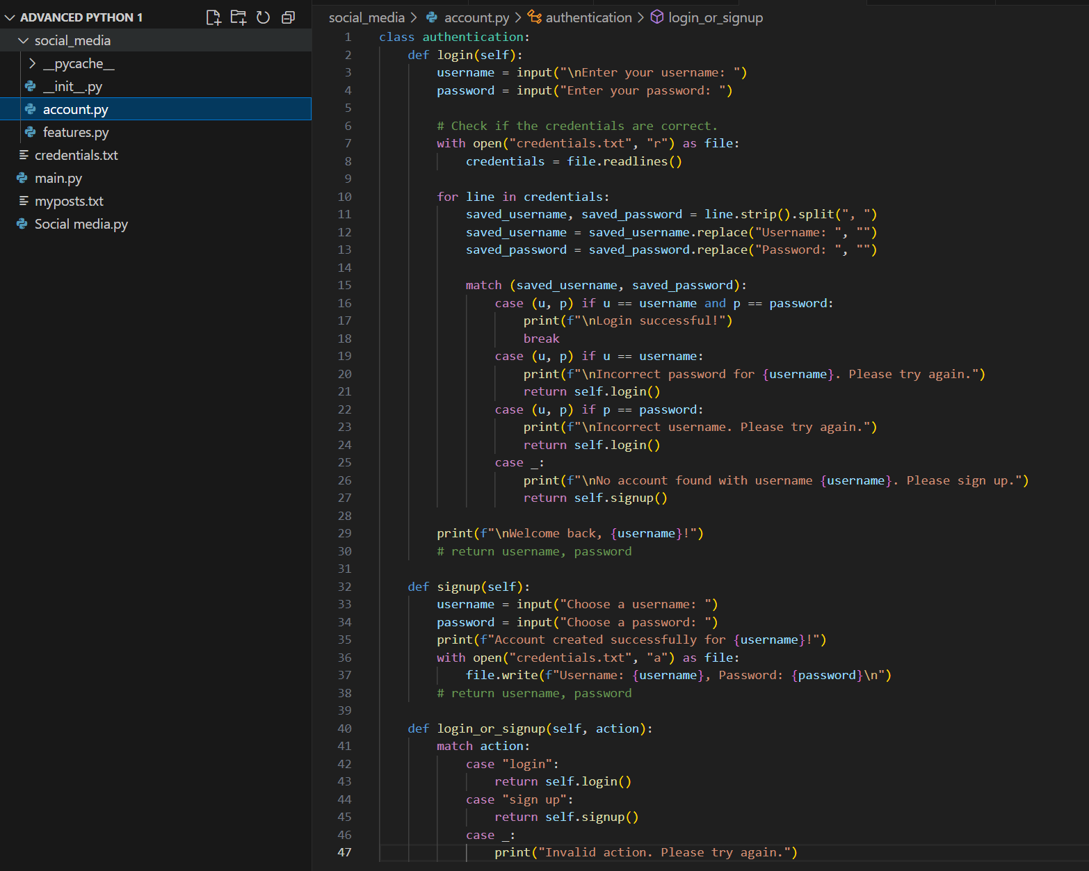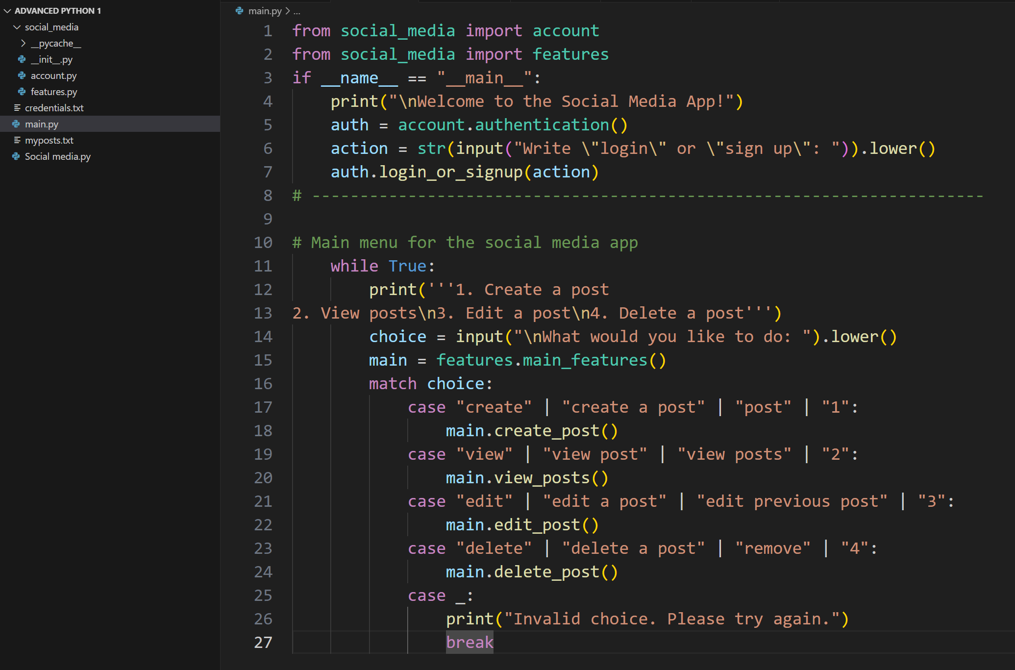 Day 18 of learning python as a beginner. Topic: match case and modular programming. Some suggested me to use match case instead of my usual if else statements as match case are more readable and appears more clear and organised. At that time I was