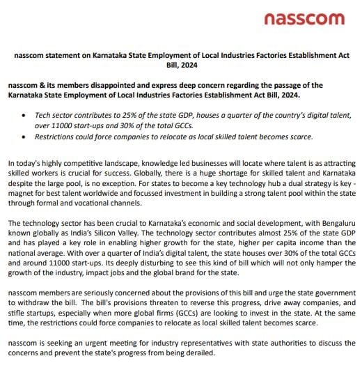 The move by the Siddaramaiah government to introduce reservations for Kannadigas in the private sector in Karnataka has turned into a self-defeating exercise. The progress seen in Bengaluru, including the metro and the employment of 5 million people