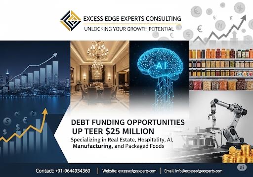 Call for Debt Funding: Middle East & South East Asia Businesses Excess Edge Experts invites established businesses in the Real Estate, Hospitality, AI, Manufacturing, & Packaged Foods sectors to explore debt funding opportunities up to USD 35 millio