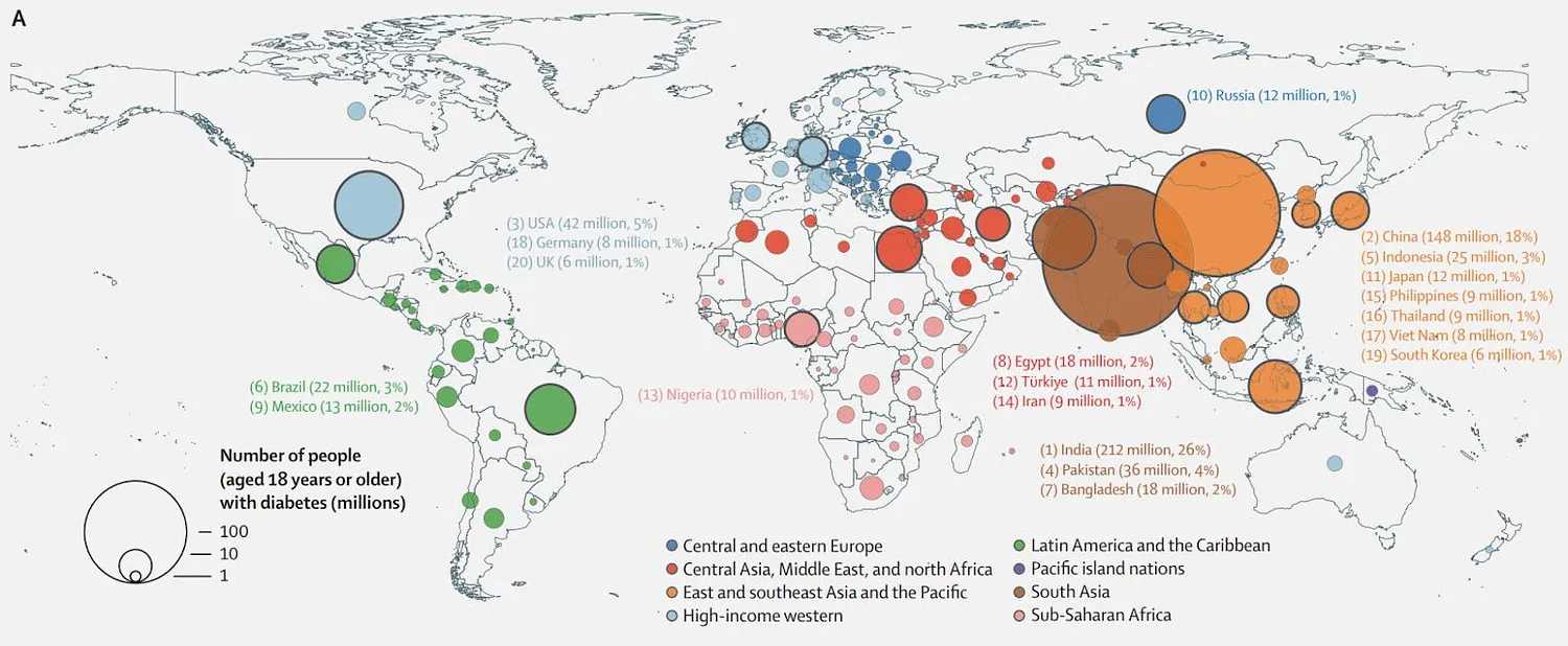 Meet the Diabetes Capital of the World India. Yes. India takes the honors for having the highest number of adults having Diabetes - 212 Million (15% of our population). What is striking is that the India numbers are equivalent to the combined tota