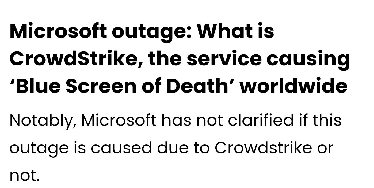 American cybersecurity company CrowdStrike is said to be the cause of massive Windows outage that has affected flights, banks, and telecom companies across the world. CrowdStrike is widely used by many businesses worldwide for managing the security o