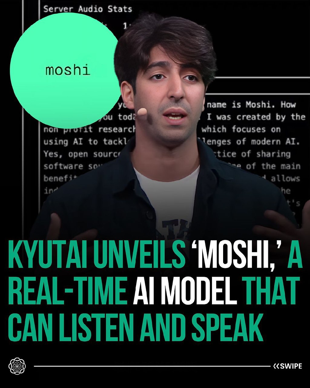 Kyutai, a non-profit AI research laboratory, has released a new AI called Moshi. It works similar to Siri or Alexa but is available for everyone to use and explore. Moshi is unique because it can listen and respond to users in real-time. You can try it out at www.moshi.chat. However, there seems to be a funny issue with Moshi. When someone tried it and shared a video, Moshi kept repeating certain phrases like "It's just a lot of pressure" and "I just like working on projects," regardless of what the person asked. So, although the demonstration looked impressive, Moshi still needs some improvements to engage in a normal conversation. If you're interested in staying updated with AI developments, would you like to be informed about AI-related news and updates? Share ur thoughts 🤔