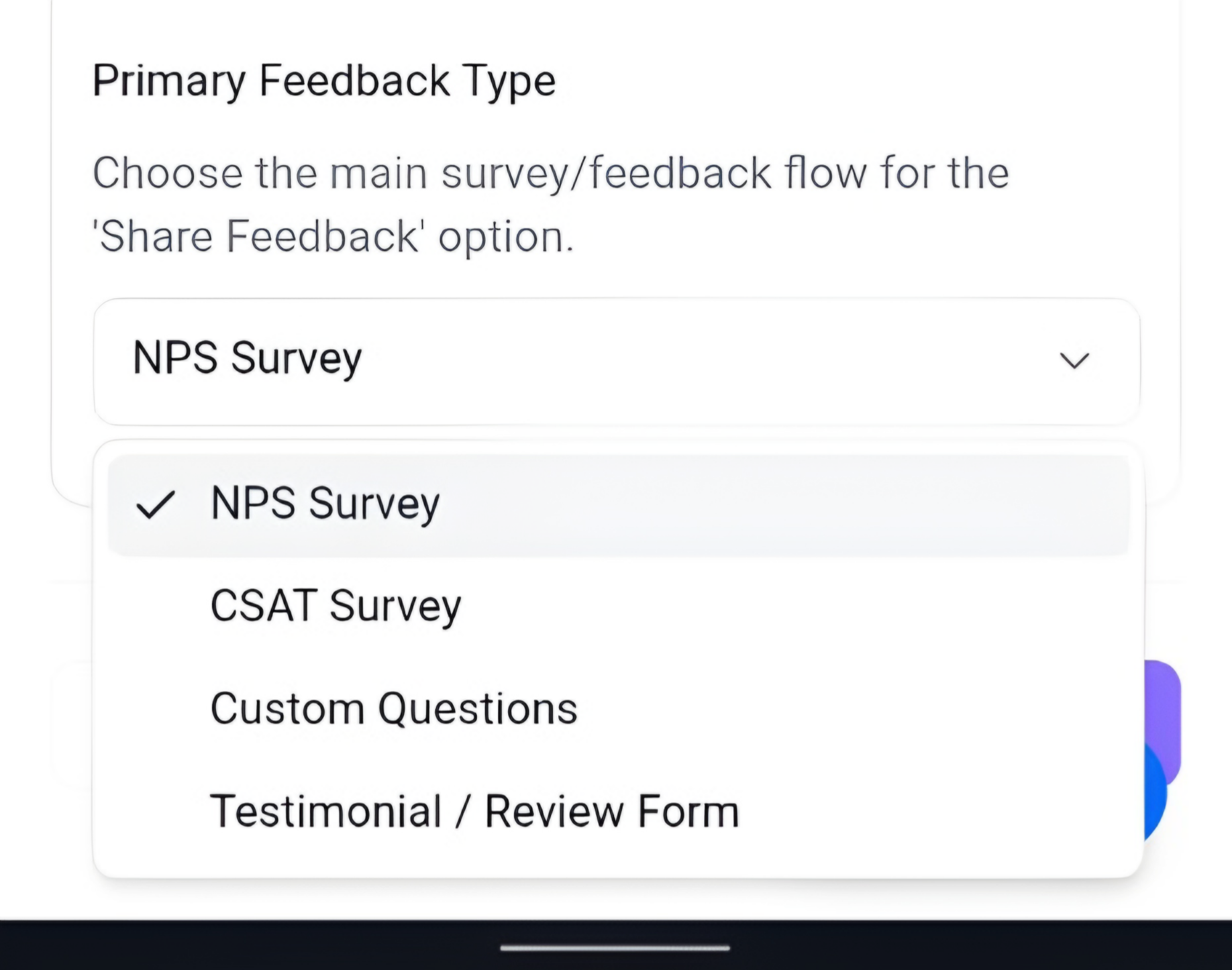 ✦ SURVEY/FEEDBACK Types Explained ✦ NPS Survey NPS stands for Net Promoter Score. This survey asks one question: "On a scale of 0-10, how likely are you to recommend our product/service to a friend or colleague?" It measures customer loyalty and s